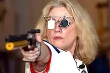 ![]() Olena Kostevych in the air pistol event at the World Cup '06 in Munich. | |