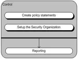The first activity in the security management process is the “Control” sub-process. The Control sub-process organizes and manages the security management process. The Control sub-process defines the processes, the allocation of responsibility for the policy statements and the management framework.