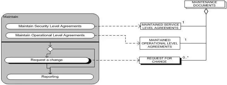 | Maintain | Maintenance of Service level agreements | This keeps the service level agreements in proper condition. The process ends with maintained service level agreements. |