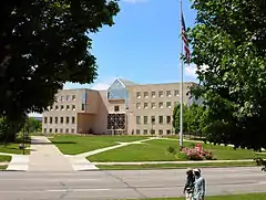 Designed by Edward Larrabee Barnes and constructed at a cost of $32 million, the IUPUI University Library officially opened in its current location on April 8, 1994.[1] With nearly a million patron visits a year, plus staff and resources that support all of IUPUI's more than 200 degree programs, the IUPUI University Library is a public academic research library.