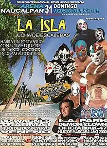 The Mexican lucha libre promotion International Wrestling Revolution Group (IWRG) has held a number of major shows since its creation in 1996. In the summer of 2014 IWRG announced that they would hold a special event called La Isla[2] With a specially designed main event match, a ladder match where the storyline was that the winner of the match would be allowed to keep the 50,000 Mexican pesos ($3815) that were suspended over the ring in a bag.[3]