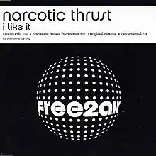 "I Like It" is a song by English electronic music duo Narcotic Thrust featuring British singer Yvonne John Lewis on vocals. Andrew Levy from acid jazz group the Brand New Heavies plays bass guitar on the song while ex-member Jan Kincaid handles the percussion. Released as a standalone single in April 2004, "I Like It" debuted and peaked at number nine on the UK Singles Chart the same month to become the duo's sole top-10 hit in the UK. The single also reached the top 20 in Flanders, Greece, the Netherlands, and Romania, as well as on three US Billboard dance charts. A music video was made for the song, featuring several female cheerleaders with red pom-poms dancing in a bright grey room filled with confetti.