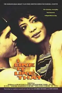 I Like It Like That is a 1994 American comedy-drama film about the trials and tribulations of a young Puerto Rican man and a half Jamaican Puerto Rican American woman living in a poverty-stricken New York City neighborhood in the South Bronx. The film stars Lauren Velez, Jon Seda, Lisa Vidal, Griffin Dunne, Jesse Borrego and Rita Moreno, and was written and directed by Darnell Martin who, in her filmmaking debut, became the first African-American female filmmaker to take helm of a film produced by a major film studio.