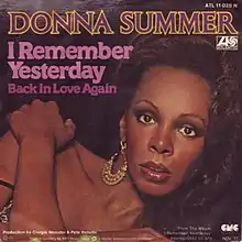 "I Remember Yesterday" is a song by American singer and songwriter Donna Summer released from her very successful 1977 album. Upon its release as a single it became a hit in Europe, reaching #14 in the UK and #24 in the Netherlands.[1][2] The album also contained a reprise of the track (which in some nations was found on the B-side of the 7" single).