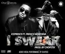 "I Swear" is a song by Nigerian hip hop recording artist Ice Prince. It was released as the fourth single from his second studio album, Fire of Zamani (2013). The song features American rapper French Montana and Nigerian singer Shaydee. It was produced by Chopstix and released under Chocolate City.[1][2][3] It debuted at number 10 on MTV Base's Official Naija Top 10 chart.[4]