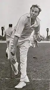 Unusually for an Australian, Johnson bowled off-spin rather than the wrist spin normally associated with countrymen of his day.[21] Johnson had an atypical bowling action, with a "rather staccato swing" of his bowling arm.[101] He bowled with a high degree of flight, causing opposing batsmen difficulties in judging where the ball would land.[1] Making intelligent use of the wind, Johnson was able to make his deliveries float away from the batsman, changing from his standard off-break.[101] According to E. W. Swanton, Johnson was "probably the slowest bowler to achieve any measure of success in Test cricket".[21] His action was compared to a corkscrew; writer Ray Robinson saying that "to coax turn from firm Australian pitches he twisted the ball almost hard enough to screw a doorknob off".[1] There were doubts about the legality of his bowling action; his English rival, Trevor Bailey claimed Johnson threw every delivery.[1] Johnson was never no-balled for throwing, having played cricket in front of umpires from Australia, England, New Zealand, South Africa, the West Indies, India and Pakistan.[99]