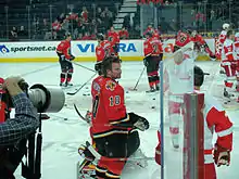 Despite a long-standing belief that major-junior ice hockey could not compete with the professionals, the WHL again placed a team in Calgary in 1995. The Calgary Hitmen were owned by, among others, Theoren Fleury, Joe Sakic and Bret Hart, after whom the team was named. The Hitmen created an immediate controversy with their logo, featuring a stylized "Jason Voorhees" type mask and distinctive pink and grey jersey colours. Despite its immense popularity, the WHL initially forbade the Hitmen from using the logo, deeming the look too violent, but relented a year later.[6] The Hitmen currently use an updated version of the original logo.