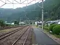 The station consists of a side and an island platform serving three tracks at grade with a siding branching off track 3, all set in an open area of rural farmland. The station is not staffed and is no station building but a public toilet has been set up at the station entrance which also has a passenger shelter on the other side. Access to the island platform is by means of a footbridge. A bike shed is provided at the station forecourt.[2][3]