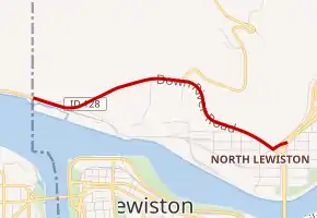 ![]() A map of northern Lewiston with SH-128 highlighted in red | ||||