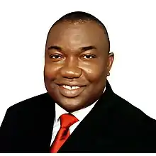 Following his party's primary election of 8 December 2014 in Enugu, Ugwuanyi won PDP's gubernatorial ticket, which made him the State's PDP Governorship Candidate for the 2015 General Elections.[19] However, another PDP gubernatorial aspirant, Senator Ayogu Eze, was displeased with the conduct of the primaries. Eze went to court to challenge the legitimacy of Ugwuanyi's emergence as the PDP's flag-bearer for Enugu State Governorship Elections.[20] Eze's petition was dismissed by Justice Evoh Stephen Chukwu, an Abuja Federal High Court Judge, who ruled that Ugwuanyi's election in the gubernatorial primary was legitimate and legally binding.[21][22] [23]