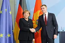 While under Đukanović there were no highest-level diplomatic meetings between Germany and Montenegro, one of the first diplomatic trips by Lukšić was to Germany at the invitation of Chancellor Angela Merkel.[59] A few months later, the heàd of German diplomacy, Guido Westerwelle visited Igor Lukšić in Podgorica during his Balkan tour.[60]