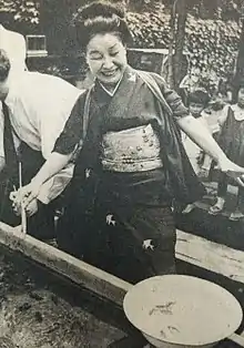 Iida Chōko (飯田 蝶子) (April 15, 1897 – December 26, 1972) was a Japanese actress. Her real name was Shigehara Tefu.[1] She played working class women and grandmothers,[2] and appeared in more than 300 films. Her husband was cameraman Shigehara Hideo.