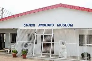 One of the structures in the compound is Efunyela Hall which was commissioned in the year 1979 in memory of his late mother, Chief (Mrs) Efunyela Awolowo.[5] The hall serves as reception and hosting of family functions. The compound also hosts a museum with a figure of old eight sitter Mercedes Benze used in 1979 and 1983 for his political campaign. The car was purchased in the year 1970. Aside the car are some other valuable items of memorial importance which include honorary academic gowns from University of Cape Town , University of Ibadan and University of Lagos and also the Awo’s Cap.[5] The museum was built on 4 August 1989.[6]