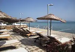 Ilıca also has a fine beach, about 1.5 km long, as well as favorable wind conditions which make Ilıca, together with the neighboring Alaçatı, an internationally prized location for windsurfing. A unique feature of Ilıca Beach is its shallow and warm waters allowing swimmers to wade up to 100 meters out to sea.[4]