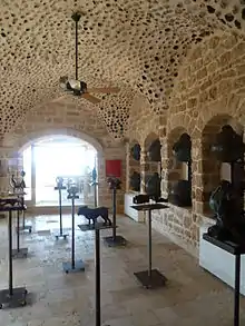 The building now housing the Ilana Goor Museum was originally erected in 1742.[2] At that time it was used as an inn for Jewish pilgrims travelling to Jerusalem. The inn, located outside the city walls, served as a shelter, protecting the pilgrims from robbers.[5] In the second half of the 19th century it became a factory for olive oil soap. Yet another century later, in 1949 and thus by now within the newly created State of Israel, a community of Libyan Jews were using part of the building as a synagogue.[6] Ilana Goor first purchased part of the building in 1983, and then eventually also the rest of it, with the intention of converting it to a museum dedicated to her art collection.[7] The museum was inaugurated in September 1995.[1]