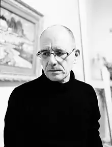 Ilgvars Zalāns (born 24 September 1962) is a Latvian painter. He is generally identified as an Expressionist and is one of the most influential contemporary expressionist painters in northern Europe.[1] In the course of his career he was influenced by Gutai group, Fluxus movement, and other modern art activists and has turned more to the scene of action-painting. Since 2007 Ilgvars Zalans had a 33-country world tour with his action-painting performances.[2] In the past years he has actively taken the opportunities offered by artist residences, thereby traveling almost half of the world. Lately, his art is better known in Indonesia,[3] Malaysia,[4] China, and Japan[5] than in Latvia, because he has lived and worked while travelling abroad extensively.[6] In his art Zalans focuses on images and motifs that are fundamental, archetypal, and universal in human experience, as opposed to those that are socially determined.[7] The exhibitions of the artist regularly take place in Latvia [8][9] and abroad.[10][11] In 2015 his works were showcased at the Scope Basel and Scope Miami Beach art shows during the ArtBasel weeks and at Art Copenhagen, the Scandinavia's International Art Fair for Contemporary & Modern Art.[12][13]