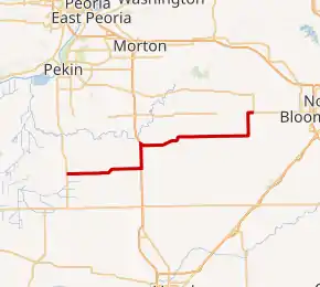 Illinois Route 122 (IL 122) is a 31.53-mile-long (50.74 km) east–west highway in the U.S. state of Illinois. Its western terminus is at a junction with IL 29 west of Delavan. It runs east to a junction with IL 9 in McLean County west of Bloomington.[1]