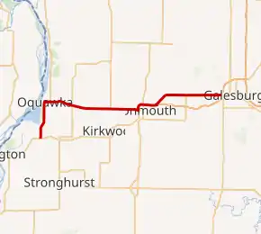 Illinois Route 164 is a state road in rural western Illinois. It runs from U.S. Route 34 in Gladstone to U.S. Route 34 and Illinois Route 41 in Galesburg. This distance is 35.70 miles (57.45 km).[1]