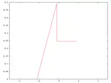 We start with a probability density function. This function, although discontinuous, is far from the most pathological example that could be created. It is a piecewise polynomial, with pieces of degrees 0 and 1. The mean of this distribution is 0 and its standard deviation is 1.