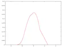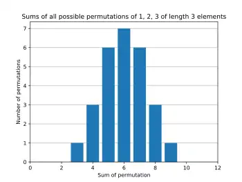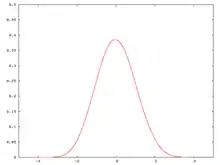 The sum of three variables has mean 0. The density shown in the figure at right has been rescaled by √3, so that its standard deviation is 1.