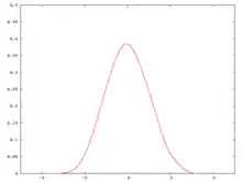The sum of four variables has mean 0. The density shown in the figure at right has been rescaled by √4, so that its standard deviation is 1.