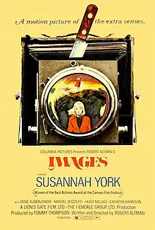 Images is a 1972 psychological horror film written and directed by Robert Altman and starring Susannah York and René Auberjonois. The picture follows an unstable children's author who finds herself engulfed in apparitions and hallucinations while staying at her remote vacation home.