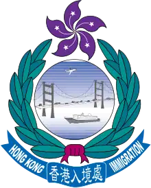 Until the establishment of Immigration Department on 4 August 1961, immigration control in Hong Kong was handled by the Hong Kong Police Force.[2] The Immigration Service Ordinance 1961 created the new department in charge of immigration control. Later in 1977, the department enlarged its functions to cover registration of persons by amalgamating with the Registration of Persons Office and Director of Immigration also assumed as Commissioner of Registration.[3] In 1979, the department took over from the Registrar General civil registration duties and the Director of Immigration was appointed as Registrar of Births and Deaths, and Registrar of Marriages.