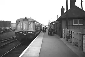 The station escaped closure when passenger services were withdrawn from the branch on 17 June 1963 because a service which had been provided since at least 1954[15] via Ulceby was upgraded from unadvertised workmen's trains[13] to publicly timetabled passenger trains. These ran from Cleethorpes, calling at New Clee, Grimsby Docks and Grimsby Town then non-stop via Habrough, at times coinciding with dock workers' shift changes.[16] This service was withdrawn on 6 October 1969 when the station finally closed.