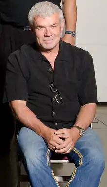 In October 2009, TNA President Dixie Carter hired Hulk Hogan and former WCW President Eric Bischoff. Both obtained a position behind the scenes; with Bischoff part of creative and Hogan as a consultant. Under their tenure, TNA would see several revamps in 2010. Beginning with Genesis in January, TNA returned to using a four-sided ring. That month, Jakks Pacific announced a five-year agreement to produce TNA action figures.[47][48] Impact! would also begin airing on Monday nights directly opposite of WWE Raw, marking the first time that two major professional wrestling promotions would go head to head since the launch of WCW Monday Nitro in 1995.[49] The show would permanently move to Mondays on March 8, 2010, Spike would keep the Thursday night slot open for repeats of the Monday night shows. During this time, Ric Flair, Rob Van Dam, Mr. Anderson would make their debuts, while Jeff Hardy would make his return.[50] Impact! would later return to Thursday nights on May 3.[51][52][53]
