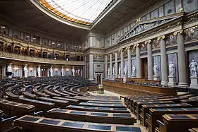 The last meeting of the House of Lords was held on 30 October 1918. The meeting was adjourned within five minutes. The House of Lords chamber of the Parliament Building was destroyed by bombing during the Second World War. It was rebuilt in a contemporary style, and serves as the chamber of the now democratically elected National Council of the Republic of Austria.