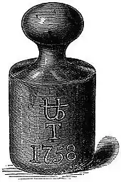 In 1827 Albert Gallatin, United States minister at London acquired an "exact copy" of the troy pound held by the British Government which in 1828 was adopted as the reference copy of weight in the United States.[33]