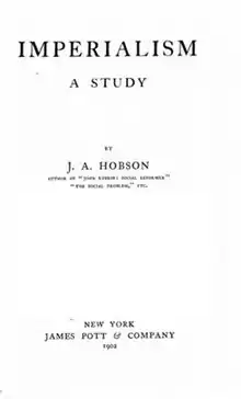 Imperialism: A Study (1902), by John A. Hobson, is a politico–economic discourse about the negative financial, economic, and moral aspects of imperialism as a nationalistic business enterprise. Hobson argues that capitalist business activity brought about imperialism.[1]