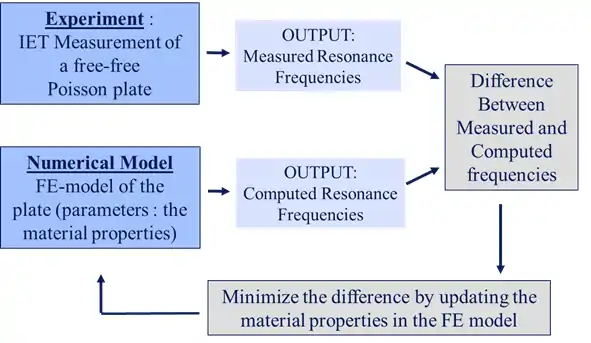 In an inverse method, the material properties in the finite element model are updated in such a way that the computed resonance frequencies match the measured resonance frequencies.