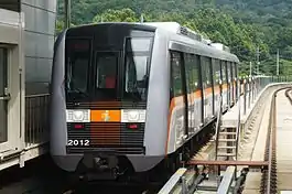 The ITC Line2 is a driverless, fully automatic subway system. The line uses 37 two-car trains, all of which were built in 2013 by Hyundai Rotem, a member of Hyundai Motor Group.[4][5] They are similar to the Canada Line cars in Vancouver, Canada.