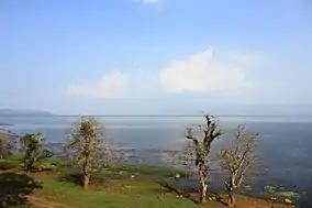 Indawgyi Lake (Burmese: အင်းတော်ကြီး; MLCTS: ang: dau kri: Burmese pronunciation: [ʔɪ́ɰ̃dɔ̀dʒḭ́]) is one of the largest inland lakes in Southeast Asia. It is located in Mohnyin Township in the Kachin State of Myanmar. The lake measures 13 kilometres (8.1 mi) east to west, and 24 kilometres (15 mi) north to south.[1] There are over 20 villages around the lake.[2] The predominant ethnic groups living in the surroundings of the lake are the Shan and the Kachin, who mainly practise agriculture. It is 546 feet (166 m) above sea level.[3] The lake is the main feature of the Indawgyi Lake Wildlife Sanctuary.
