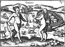 Although the historical references about the India Juliana are brief, they establish a strong counterpoint with the more usual representations of Guaraní women in the early-colonial sources of the Río de la Plata region.[3] The main source comes from an account that Cabeza de Vaca presented to the Council of the Indies in December 1545 as judicial evidence,[3][17] known as Comentarios.[18] The text was actually written by Cabeza de Vaca's scribe Pero Hernández, at the former's request.[19] Returning to Spain as a prisoner in 1545, Cabeza de Vaca entered into a legal dispute with the Council of the Indies that lasted almost eight years, in which he received a harsh sentence.[20] In 1555, after resolving his legal problems and cleaning up his image, and upon receiving the pertinent royal authorization, Cabeza de Vaca published La relación y comentarios del gobernador Álvar Núñez cabeza de vaca de lo acaecido en las dos jornadas que hizo a las Indias, which compiled the Comentarios along with a previous account from 1542 known as Naufragios.[19] However, he chose to omit the India Juliana passage from the book, along with other parts of the account that evidenced his use of violence, so as to "avoid any statement that allows a double reading".[21] Section "XLII" of the original 1545 Comentarios read: