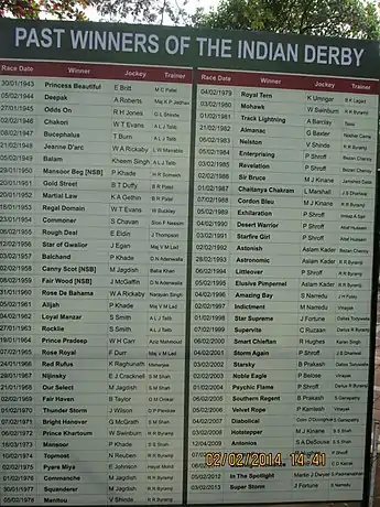 - "List of Indian Derby Winners". List of Indian Derby Winners. Retrieved 24 May 2018.