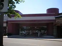 Indian Mound Mall opened its doors on October 23, 1986, becoming the second[2] indoor shopping mall in Licking County. The mall's first logo consisted of a circle with lines, and a feather that represents the native American Indian, which has "Indian Mound Mall" written on it. The original anchor stores consisted of the following: Elder-Beerman, JCPenney, Lazarus, and Hills. Crown Cinema was added to the rear of the mall in 1988.[3] A fountain was originally located in the center of the mall from 1986 to 1997. The same year the fountain was removed, the mall added Sears to replace a freestanding store nearby, and the Crown Theaters expanded from six screens to eleven screens, which became a Hollywood Theater. In 2016, AMC Theaters bought the Hollywood Theater.[4] In 1998, Elder-Beerman was expanded, and later closed on August 26, 2018, adding 20,000 square feet (1,900 m2).[5]