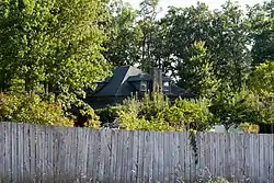 ![]() The upper story and roof, seen from WV 7 in September, 2015 | |