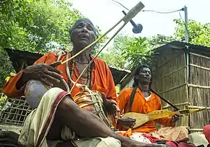 The Bauls of Bengal were an order of musicians in 18th, 19th and early 20th century India who played a form of music using a khamak, ektara and dotara. The word Baul comes from Sanskrit batul meaning divinely inspired insanity. They are a group of Hindu mystic minstrels. They are thought to have been influenced greatly by the Hindu tantric sect of the Kartabhajas as well as by Sufi sects. Bauls travel in search of the internal ideal, Maner Manush (Man of the Heart).