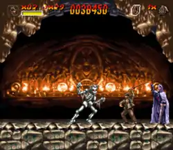 A Sega Genesis/Mega Drive conversion was reported by Electronic Gaming Monthly to be 100% complete and reviewed in gaming magazines.[3][4][5][6] Like many third-party titles near the end of the Genesis/Mega Drive's lifecycle, however, the game was shelved and was never released. A prototype of the Genesis/Mega Drive version was sold on eBay for GB£770.00.[7] In 2017, Factor 5 co-founder Julian Eggebrecht stated that the Genesis/Mega Drive port was left unpublished due to U.S. Gold ceasing operations.[8]