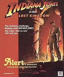 Indiana Jones in the Lost Kingdom is a puzzle video game developed by Michael J. Hanson and published by Mindscape for the Commodore 64.[1] The game is based on the Indiana Jones series,[2] and was released in North America around January 1985,[3][4][5] while a UK version was released in March 1985.[6]