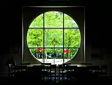 The two buildings are connected by the Churchman-Fehsenfeld Studio. The west building is home to the Ruth Lilly Library, an octagonal two-story atrium with 12-foot (3.7 m)-diameter circular windows on all sides, and a fireplace with ceramic tiles fired in the Center's own kiln.[7][9] The west building features the Center's administrative offices, the Stan & Sandy Hurt conference room, a studio prep and storage area, painting, drawing, printmaking, photography and computer graphics studios. The east half of the building consists of studios for woodworking, glassblowing, ceramics, metalsmithing, steel and stone sculpture and benchwork.[7]