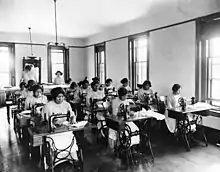 Basket making was an important part of Native American Californian culture.[22] Baskets were both beautiful and functional, made of twine, woven tight enough that they could hold water for cooking.[23] Tribes made baskets in a wide variety of shapes and sizes to fulfill different daily functions, including "baby baskets, collecting vessels, food bowls, cooking items, ceremonial items"[23] and wearable basket caps for both men and women. The watertight cooking baskets were often used for making acorn soup by placing fire-heated stones in the baskets with food mixtures, which were then stirred until cooked.[24]