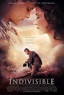 Indivisible is a 2018 American Christian drama film directed by David G. Evans. Starring Sarah Drew, Justin Bruening, Tia Mowry and Eric Close, the film is based on the true story of Darren Turner. It follows an Army chaplain as he struggles to balance his faith and the Iraq War. It was released in the United States on October 26, 2018 by Pure Flix and received mixed-to-positive reviews from critics.
