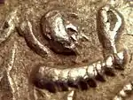 Profile of the Indo-Scythian King Azes on one of his coins.