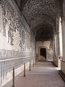 The term indochristian art was coined by Constantino Reyes-Valerio in his 1978 work, Arte indocristiano: escultura del siglo XVI en México[4]. This work was followed by an analysis of indochristian mural painting,[5] and the two books were re-published in combined form in 2000.[6] In this work, Reyes-Valerio defines indochristian art as art that is indigenous in its production but Christian in its themes,[3] using the term as a designation for artwork that blended symbolic elements of Christian and pre-Hispanic cultures. An expert in pre-Columbian Mesoamerican sculpture, Reyes-Valerio focuses his studies on art produced in monastic settings in New Spain, primarily examining sculptures and paintings that ornament monasteries and convents, and identifying iconographic connections to earlier indigenous works.