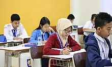 The competition pits students from the thirty-four provinces of Indonesia, and winners of the competition are further selected to represent Indonesia in their respective subjects' International Science Olympiad.[1] In addition, Indonesian public universities are required to accept medal-winners of the competition into their undergraduate programmes.[2]