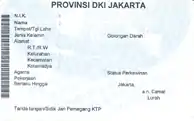 The bearer's photo was printed directly onto a plastic card. Surveillance, verification and validation remained at the RT/RW levels. This KTP featured the bearer's thumb print and a unique serial number.[3]