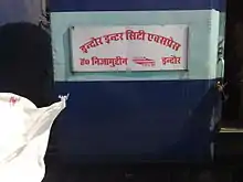 The 12415 / 12416 Indore – New Delhi Intercity Express is a daily superfast train service which runs between Indore, the largest city and commercial hub of Central Indian state Madhya Pradesh and New Delhi, the capital city of India.[1]